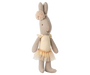 The beloved Maileg Micro Bunny is ready for the stage, dressed as an elegant ballet dancer. She wears a sweet ballet suit paired with a soft tulle skirt, and a delicate accessory adorns her signature pointy ears.