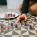 Each mandala piece set includes 36 pieces in 3 shades (12 Pieces in each shade).  You can create the most stunning mandala designs while encouraging the development of fine motor skills and also teaching math and symmetry.  Mandala sets are perfect for pretend play, small world décor, creative play scenes, counting, and sorting.